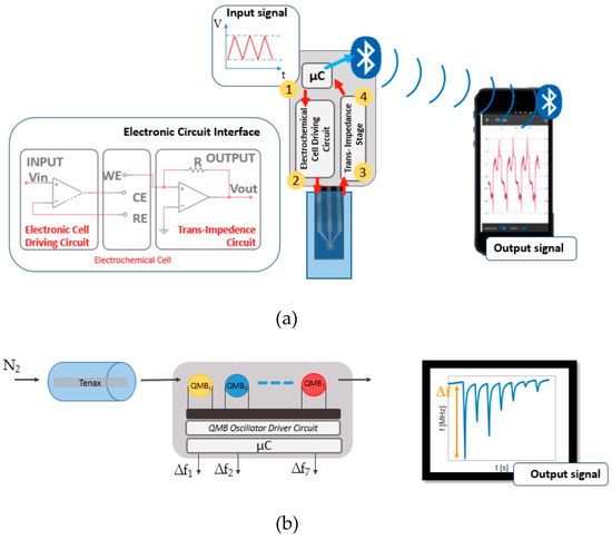 - Pennazza, G.; Santonico, M.; Zompanti, A.; Grasso, S.; D’Amico, A. Electronic Interface for a Gas Sensor System Based on 32 MHz QCMs: Design and Calibration. IEEE Sens. J. 2017, 18, 1419–1426. [Google Scholar] [CrossRef]