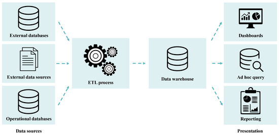 - Extract, transform, and load (ETL) process: enables extracting data from multiple sources, clean and normalize these heterogeneous data to make them consistent and unambiguous, and load the transformed data into a data warehouse (DW);