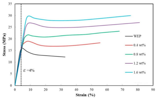The stress–strain curves of the composite.