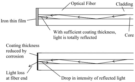 - Qiao, G.; Zhou, Z.; Ou, J. Thin Fe-C alloy solid film based fiber optic corrosion sensor. In Proceedings of the Proceedings of 1st IEEE International Conference on Nano/Micro Engineered and Molecular Systems, Zhuhai, China, 18–21 January 2006; pp. 541–544. [Google Scholar]