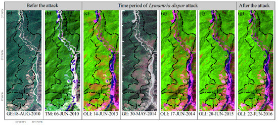 - Future studies will be required to explore the application of novel satellite images such as Sentinel-2 or the combination of Landsat 8 and Sentinel-2 for monitoring near-real-time insect-induced defoliation, identifying infestations resulting from bark beetles and pathogens, and discriminating between them.