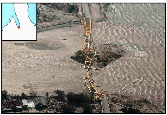 The Palu IV bridge destroyed by the Mw 7.5 seismic event and the following tsunami (modified from https://www.nytimes.com/2018/09/30/world/asia/indonesia-tsunami-science.html).