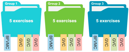 Each group of exercises stimulates one of the basic factors of visual-motor cognitive aptitudes (Table 3), and the three groups of visual comprehension. The exercises were applied iteratively over a month (four lessons), with a weekly lesson lasting approximately 20 min. Each lesson can contain as many exercises as the professional decides.