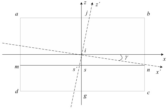 Under the condition of maintaining the initial state, when the camera only performs the rolling motion, as shown in Figure 5, it is assumed that the rolling angle is clockwise rotated (it is the same as counterclockwise rotation), is a new image coordinate system, and the SSL intersects the axis at . So, the SSL can be expressed by: