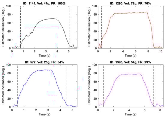 The inclination signature feature set is specified in Table A1, where denotes the inclination estimate of the jth drink event defined according to (1).