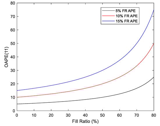 Residual volume-based overall average percentage error versus final fill ratio for various fill ratio absolute percentage error values.