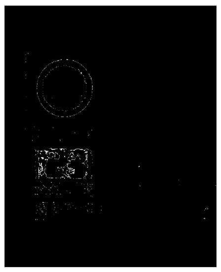 In the process of threshold segmentation, the pixels within the set threshold range are set to white, otherwise they are set to black, and the image is completely binarized. Since the traffic sign in the original picture is red, the obtained threshold coarse segmentation image only displays red. Figure 4 presents the threshold rough segmentation image.