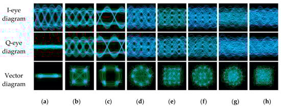 Step 4: If the timing deviation exists in the target signal, it is necessary to extract the sample value at the optimum sampling position for signal eye diagram and vector diagram. We use the non-data-aided timing estimation algorithm in [52]. The specific expression is as follows, where is the length of the signal symbols, is the sampling period and is the oversampling number: