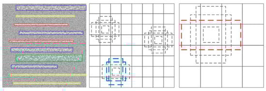 Part 2: The design of the default box. In this part, we will design several feature default box for different scales of feature maps. Each feature map at the top of the VGG16 networks is associated with a set of feature default box. As shown in Figure 6, there are dotted borders at each position of 4 × 4 and 8 × 8 feature maps. These fixed-size borders are default boxes, and their scale parameters are designed by the different feature maps scales. For example, assuming that we need M feature maps to predict, the scale parameters of the default box are as follows: