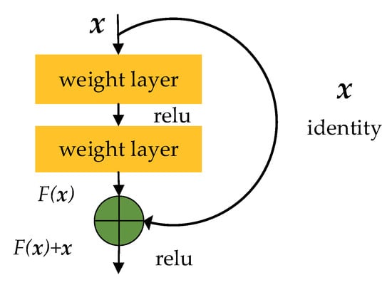 - He, K.; Zhang, X.; Ren, S.; Sun, J. Deep residual learning for image recognition. In Proceedings of the IEEE International Conference on Computer Vision and Pattern Recognition (CVPR), Las Vegas, NV, USA, 26 June–1 July 2016; pp. 770–778. [Google Scholar]