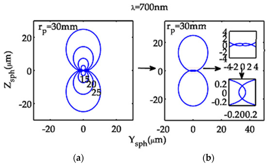 With Equation (41) describing an ellipse, the model optical system produces elliptical patterns for different values of rp (Figure 3).