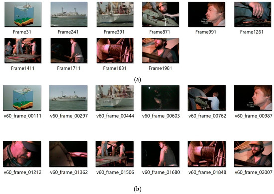 User-selected images from the “Zakrzowek No. 3” sequence (a). The representative frames are compared with the thumbnails computed by our algorithm (b). The best accuracy obtained 0.71, with the processing time 140 frames/s.