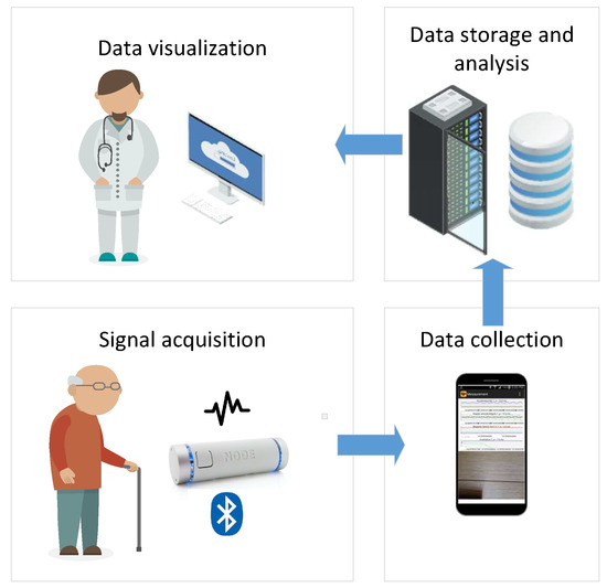 - Signal acquisition: which aims to collect bio-medical and other relevant environmental data and send them to the subsequent data collection block. It consists of one or more sensors (biomedical sensors, occupancy and movement sensors, etc.) that are usually connected wirelessly with the rest of the system.