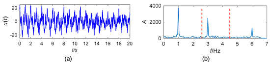 (a) The simulated signal; (b) segmentation of the Fourier spectrum.
