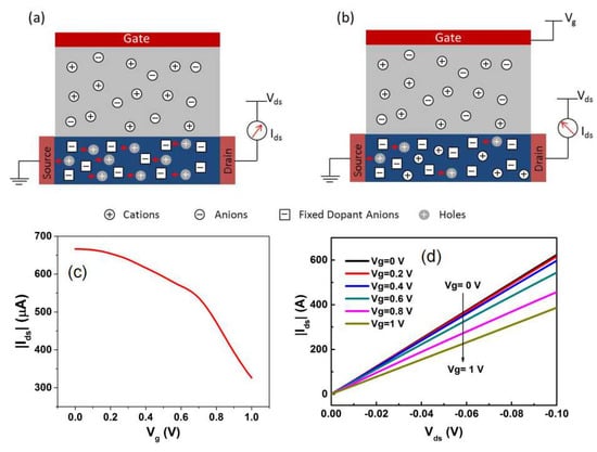 - Kim, S.H.; Hong, K.; Xie, W.; Lee, K.H.; Zhang, S.; Lodge, T.P.; Frisbie, C.D. Electrolyte-Gated Transistors for Organic and Printed Electronics. Adv. Mater. 2013, 25, 1822–1846. [Google Scholar] [CrossRef]