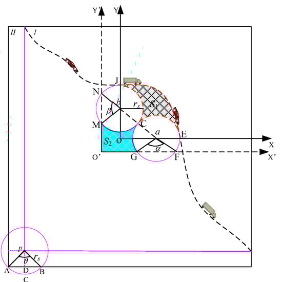 Set the range of value for δ to be δ ∈ [0, 1]. In order to calculate the size of the shadowed area, we establish the 2-dimension panel and mark the Y-axis and the X-axis. The area which is shadowed and the partial shape between sensor nodes a and b, as well as the node p, which is a sensor node at the lower-left corner, are shown in Figure 3.