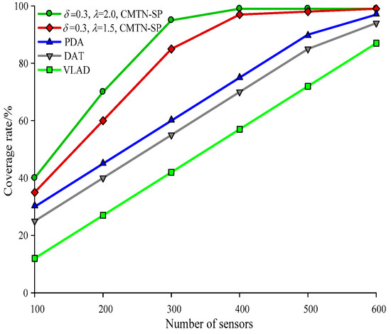 Networks coverage with 400 × 400 m2, δ = 0.3.