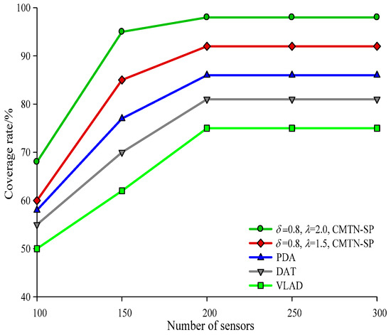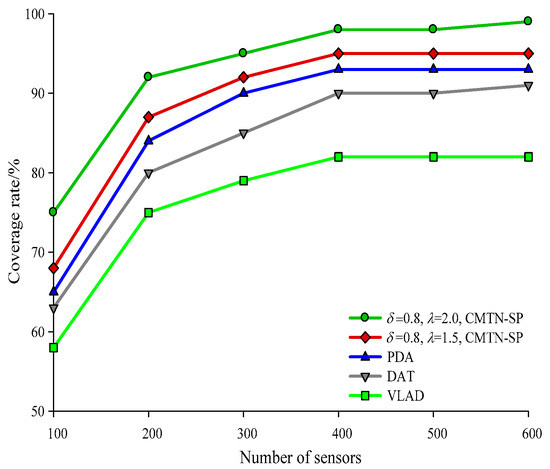 Networks coverage with 400 × 400 m2, δ = 0.8.