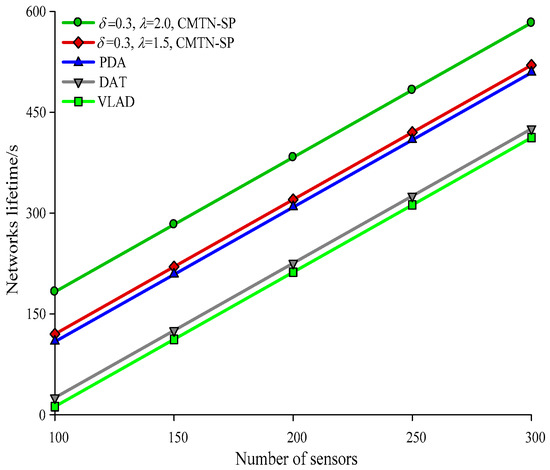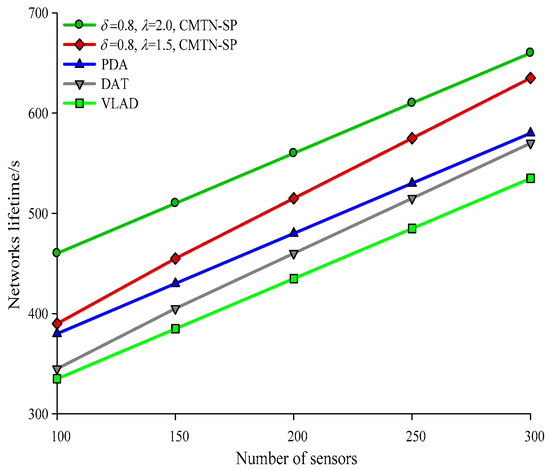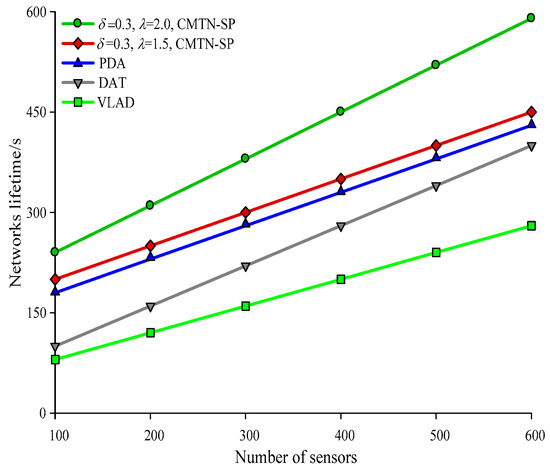 Networks lifetime with 400 × 400 m2, δ = 0.3.