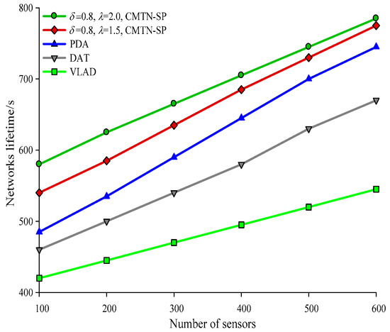 Networks lifetime with 400 × 400 m2, δ = 0.8.