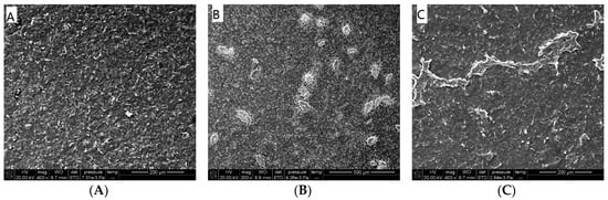 SEM images of different materials modified SPEs ((A): naked SPE, (B): Fc(Cys)2/SPE; (C): Fc-ECG/SPE).
