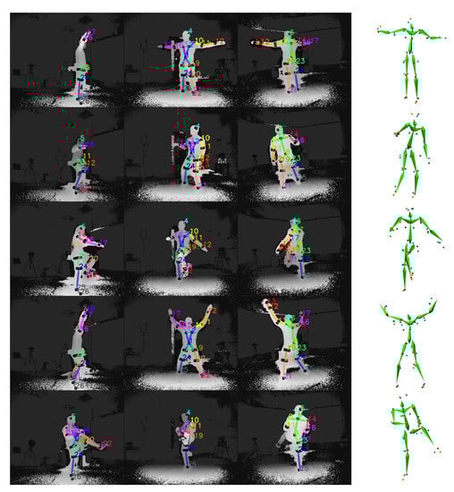 - Shotton, J.; Fitzgibbon, A.; Cook, M.; Sharp, T.; Finocchio, M.; Moore, R.; Kipman, A.; Blake, A. Real-time human pose recognition in parts from single depth images. In Proceedings of the Computer Vision and Pattern Recognition (CVPR), 20–25 June 2011; IEEE: Colorado Springs, CO, USA, 2011; pp. 1297–1304. [Google Scholar]