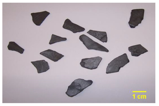 As we mention in the introduction, during the crushing process, scraps with an irregular shape are generated randomly (Figure 1b). If there are too many scraps with irregular shapes, then the above-mentioned method is not appropriate for this research. Therefore, we need to determine the homogeneity of the scraps’ particle sizes. Normally, this determination is realized by studying the mass distribution according to the scrap sieving fractions with different particle sizes.