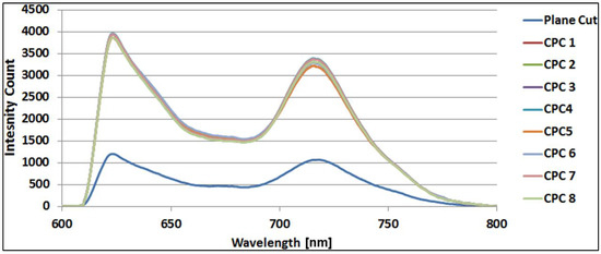 Spectrum for plane-cut and CPC fiber tips for dummy sensor.