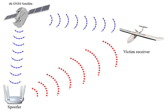 Some of the types of intentional interferences include jamming, meaconing, and spoofing [4,5,6]. The aim of jamming is to prevent a user from receiving the authentic signal by transmitting another signal with a significantly greater power than that of the authentic signal. A meaconing attack involves transmitting another signal collected at a different location or time. If a meaconing attack is successful, the receiver would end up providing navigation information, such as the location and time, at which the meaconing signal was collected. The most dangerous type of interference is a spoofing attack. If the receiver captures a spoofing signal, the navigation solution can be controlled by the spoofer [7].