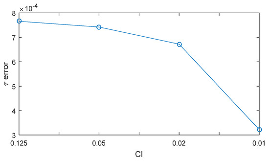 indicates the estimated replica code phase obtained using the original DLL, the integration time of which is 1ms. is the estimated replica code phase obtained using the SPE. The calculation time required by the SPE is significantly lower than that required by the original DLL, because can be calculated in just one calculation using the SPE. We can see that the replica code phase values estimated using the two methods are very similar. Figure 14 shows the errors with respect to CI. The errors decrease with the decrease in CI. Thus, the SPE error is due to the reduction in the number of DLL calculations during the spoofing attack process.