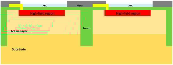 The distance from DI to trench and the trench width are critical dimensions (CDs) of the technology and were minimized as much as possible, to increase the fill factor (FF) of the device, defined as: