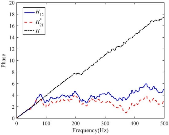 It can be seen from Equation (14) that despite the unknown spectral characteristics of leak source, the proposed FRF, H(ω), only contains the phase information related to the time delay that can be achieved directly by calculating the gradient of the phase spectrum.