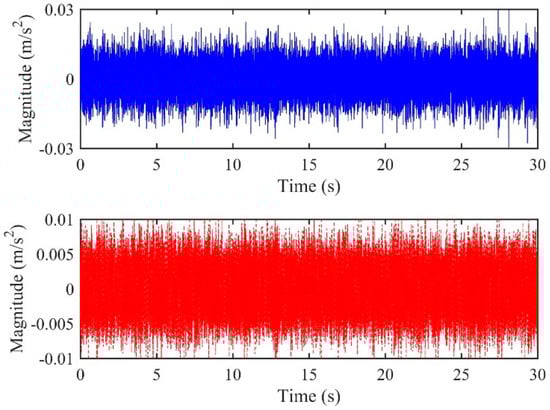Leak signals measured by the accelerometer pair of (a) A1; (b) A3.