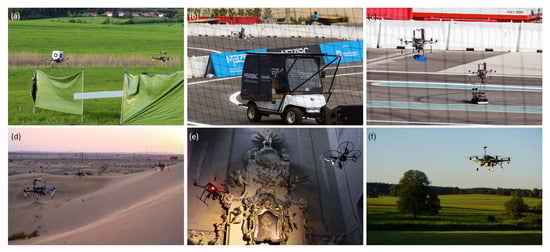 - Saska, M.; Báča, T.; Thomas, J.; Chudoba, J.; Preucil, L.; Krajník, T.; Faigl, J.; Loianno, G.; Kumar, V. System for deployment of groups of unmanned micro aerial vehicles in GPS-denied environments using onboard visual relative localization. Auton. Robot. 2017, 41, 919–944. [Google Scholar] [CrossRef]