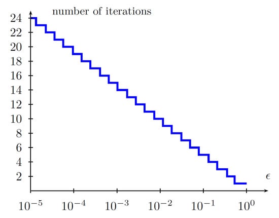 - evaluate the minimal number of iterations N for which the difference between true minimum and iterative solution (it is assumed that it is in the middle of the range ) does not exceed the prescribed relative accuracy ϵ, where