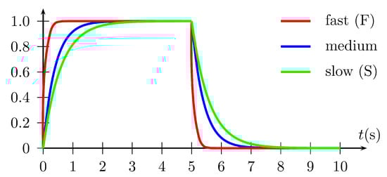 - accuracy of the obtained controller parameters for reference primitives with different dynamics: fast (, ), medium (, ), slow (, ) reference primitives,