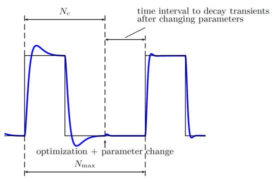 - for no action is taken (the parameters of the controller have been updated, no performance index is collected), and these steps are intended to allow the closed-loop system to stabilize at some point (to decay the transients), in order to allow performance index evaluation during the next main iteration (starting again from ).