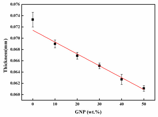 Thickness of hybrid film varied with the GNP weight percentages.