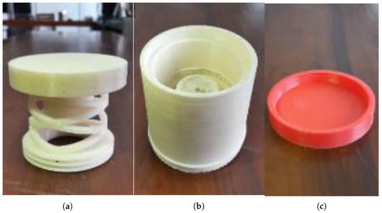 3D printed parts of the force sensor: (a) cylindrical arch spring; (b) outer protection; (c) bottom pad.