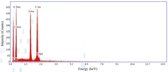 The Energy-Dispersive X-ray (EDAX) spectrum for a prepared conductive polymer sample is illustrated in Figure 17. In the obtained elemental composition, only sulphur, oxygen, silicon and carbon signals can be observed. These have been identified as the major elements in the conductive samples prepared by Ying Huang et al [] that was adopted for conductive polymer preparation. EDAX analysis shows the indirect evidence of a presence of nano-Silica (SiO) that was used to enhance the conductivity of the polymer.