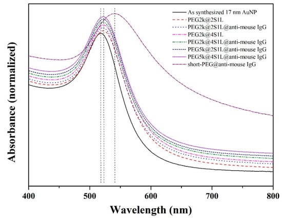 | 17 nm AuNP | PEG2k_S2L1 | PEG2k_S2L1_IgG | PEG2k_S4L1 | PEG2k_S4L1_IgG | PEG5k_S2L1_IgG | PEG5k_S4L1_IgG | |