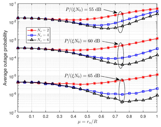 Based on the analysis of the optimized power allocation, we investigate the optimal relay location in this section. Substituting and into Equation (33), with some algebraic manipulations, the approximate value of average outage probability can be rewritten as