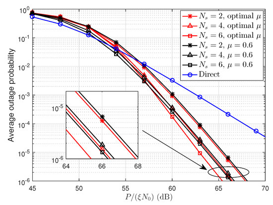3.1. Average Outage Performance of Direct Transmission