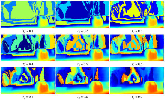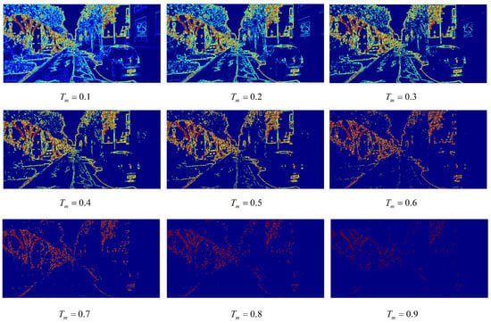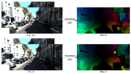 Thirdly, the loss function is designed to focus on the detail of a foreground scene. Generally, far-sighted objects have relatively small values of optical flow, while near-sighted objects have relatively large values of optical flow, especially moving objects in dynamic scenes. Thus, when optical flow is is applied in judging dynamic objects, with a bigger difference is, the speed changes rapidly. Finally, the local mask can be obtained by two successive optical flows as shown in Equation (
