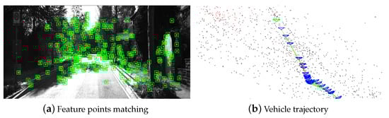 Figure 15a are key points which are matched by ORB features. The other is an estimation of vehicle trajectory in world coordinate, which is shown in