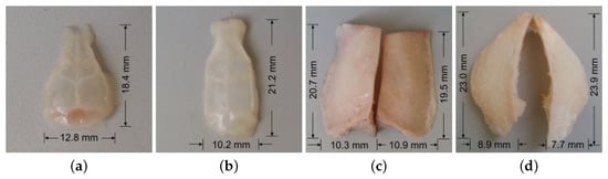 Photographs of (a) mouse skull bone, (b) rat skull bone, (c) dog frontal skull bone, (d) dog parietal skull bone.