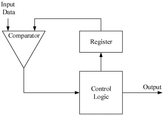 Pooling layer selects the Max Pooling method. The max pooling window is 2 × 2, which chooses a maximum value from 4 points as the new point; the 8 poolers can read data simultaneously from memory and read four values sequentially. The structure of the Pooler is shown in Figure 7. The register starts with a value of zero and stores the current maximum value. When one comparison finishes, Control Logic will save the result of Comparator, and Comparator will read a new point and start a new comparison. After four comparisons, Control Logic will write it back to memory.