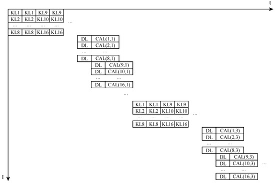 Strategy 1: Load 8 × 16 weights of number 0–7 neurons, load 8 × 8 image values, and calculate. When the calculating is carried out, load 8 × 8 neurons at the same time. Calculate, and load 8 × 8 image values simultaneously. Load the following 8 × 16 weights of number 0–7 neurons, load 8 × 8 image values, and calculate. Repeat the process until all points are calculated and get the output value. Then calculate the output value of number 8–15 neuron values, and calculate the output value of numbers 16–23, until you get output of all neurons, as shown in Figure 8.
