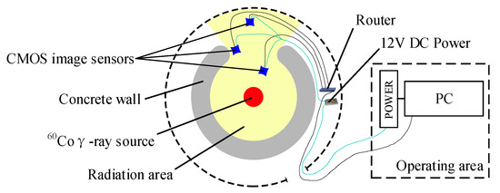 In a nuclear facility accident, radiation could be detrimental to the applied diagnostic equipment, such as video image systems as well as electronic components of the detection systems. In particular, γ-rays are considered in the radiation environment of nuclear facility accidents because their level of energy is high and their potential for damage to tissue is extremely high [1,2]. Previous research has revealed that the maximum dose rate in the Fukushima accident reached 650 Sv/h. A complementary metal oxide semiconductor (CMOS) active pixel sensor (APS) video monitor is relatively cheap, consumes little power, has strong environmental adaptability, has strong radiation resistance, and is sensitive to radiation; therefore, it has been applied to radiation environment monitoring [3,4,5,6].