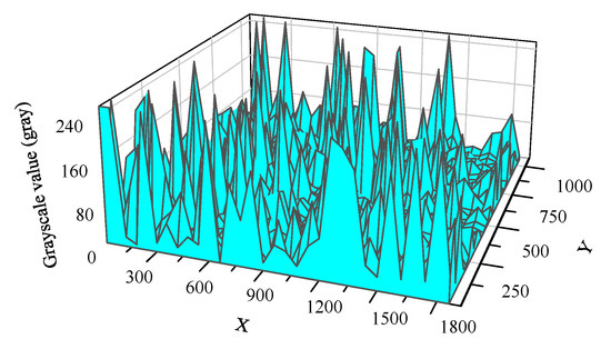 To study the spatial distribution of the response events, we overlapped the grayscale value of 35,729 frames from the 2500-s video. The mesh of the overlapped radiation response events is shown in Figure 5. It indicated that the radiation response events occurred throughout the pixel array region randomly and that many peaks were distributed randomly over the mesh.
